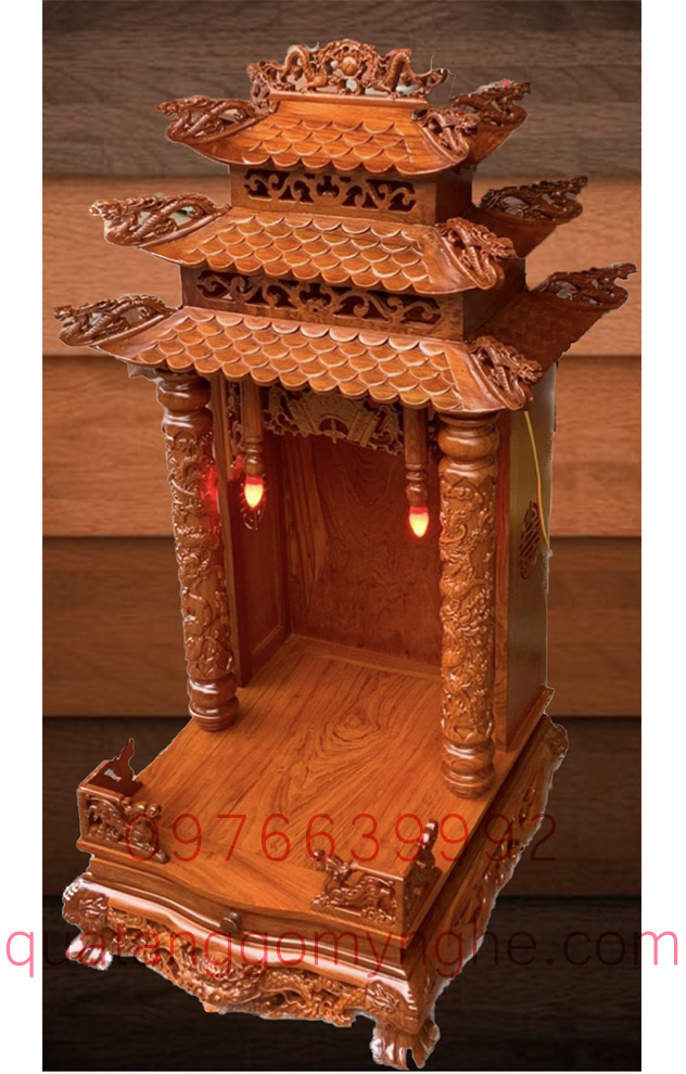 Bàn thờ thần tài ông địa có mái gỗ hương có kích thước : 61cm x 69 cm