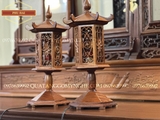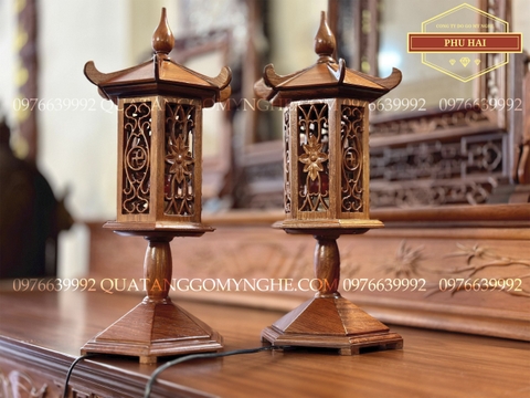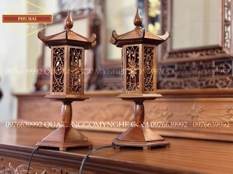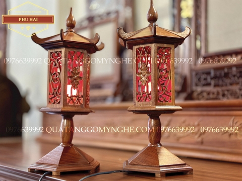 Đôi Đèn Bàn Thờ Gỗ Hương cao 48 x 21