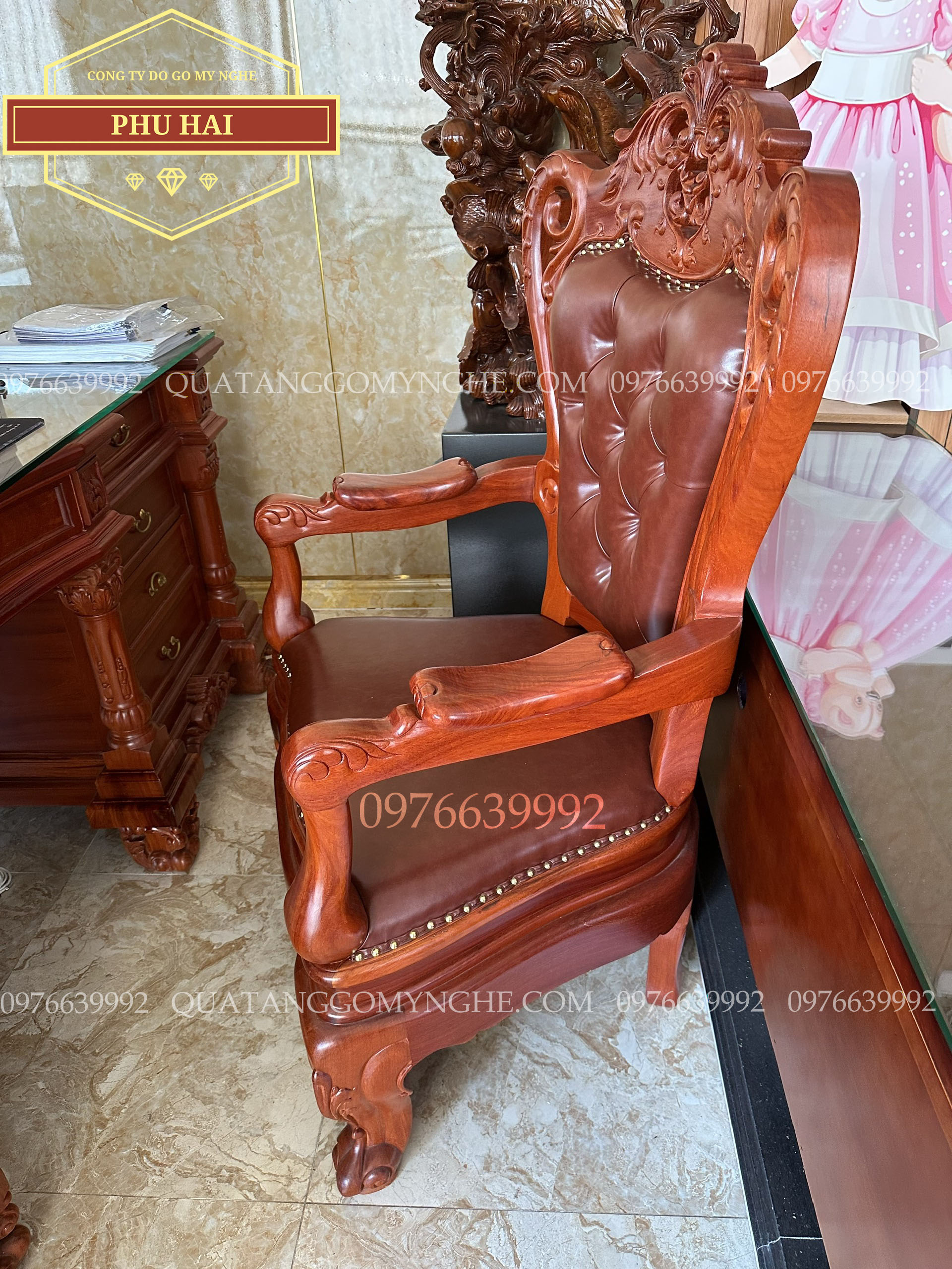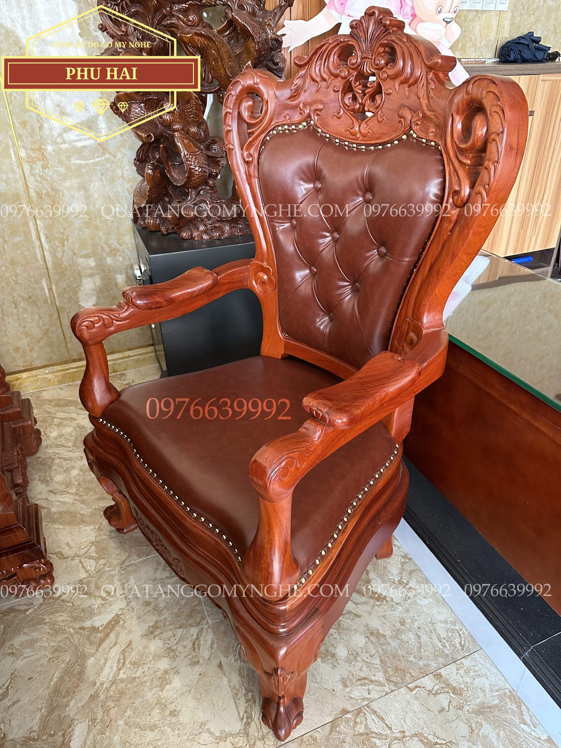 - Sản phẩm Ghế Gỗ Giám Đốc Lãnh Đạo Bọc Da Cao Cấp được chạm khắc kĩ lương hoa văn hoa lá tây kết hợp kiểu dáng hoàng gia đặc biệt loại lớn giúp các nhà lãnh đạo , giám đốc , chủ tịch cho dù có thân hình nhỏ hay to đều có thể ngồi rất thoải mái để làm việc . có bệ tì tay làm cho dáng ngồi nổi bật thanh cao và sang trọng hơn .
