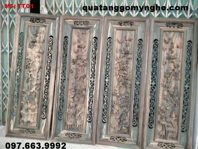 Tranh gỗ trạm tứ quý có 4 tấm thể hiện 4 mùa xuân, hạ , thu, đông